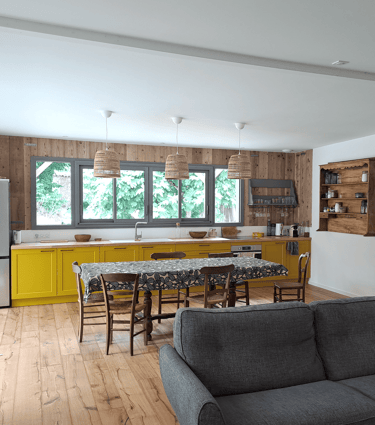 Une extension contemporaine est également venue compléter l’ensemble, offrant davantage de surface et une véritable harmonie entre l’existant et le neuf.